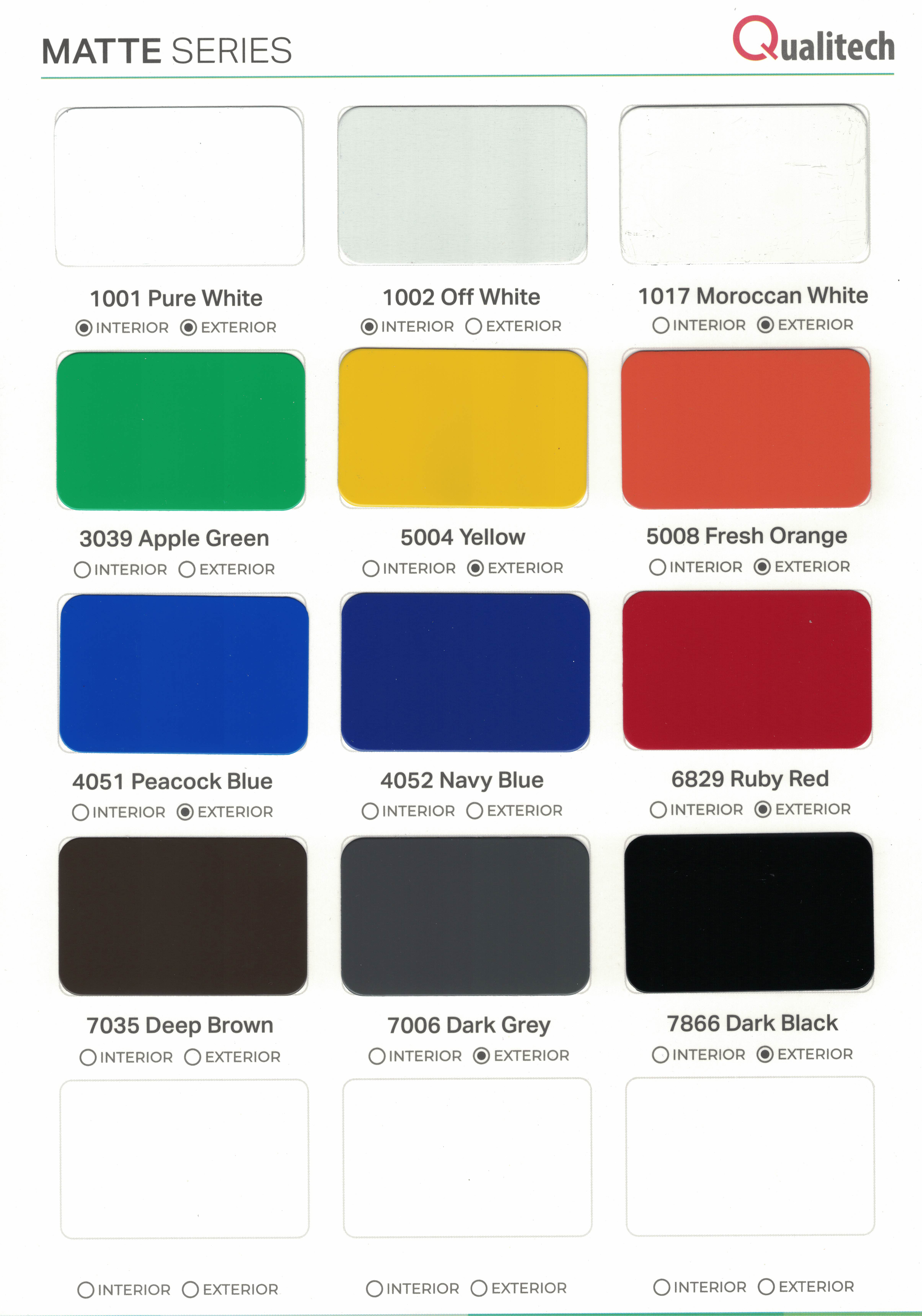 Full Catalog >> Qualitech Color Chart 2026