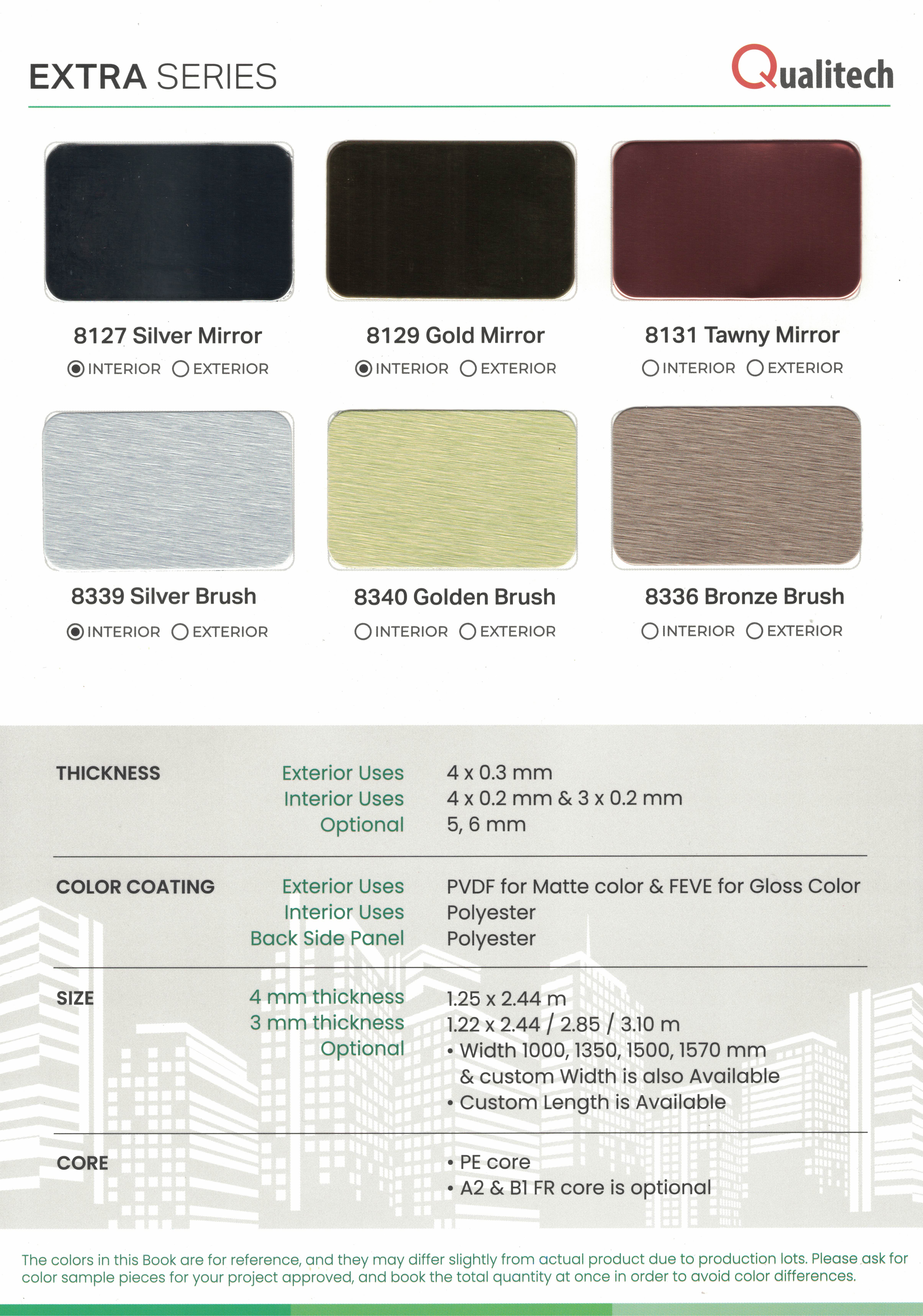 ภายนอก | 1.25 x 2.44 | 4 มม. | 0.3 มม. | PVDF / FEVE |